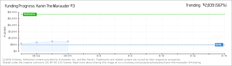 Help your backers reach your daily goals and help others see how you're doing. It's easy, with Kicktraq Mini.Here are a few quick snippits of code you can use to embed your personalized widget on your website, in your blog, and even on your favorite forum.