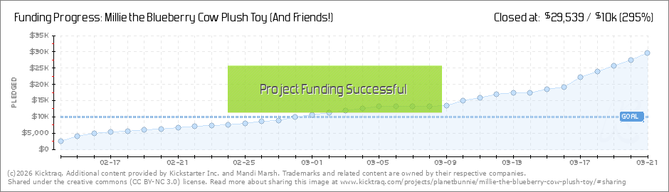 Update 8: Final Week Hello everyone! On Monday, March 21st at noon, our Kickstarter will no longer be available to support! If you want a plush toy of Millie the Blueberry Cow, Jelly the Strawberry Frog, or Rosie the Strawberry Lemonade Cow,... (Read More)