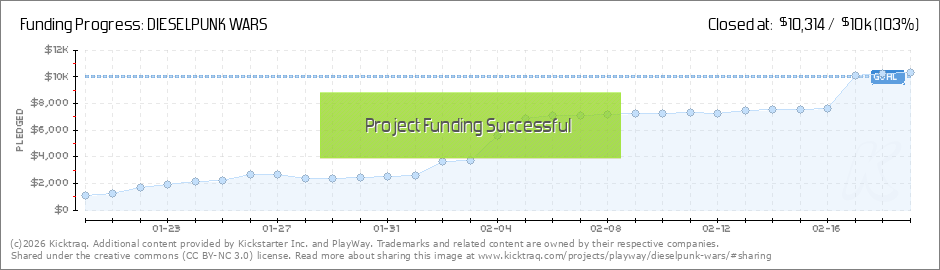 Welcome to what is most likely our final Kickstarter update before the end of this campaign! It was a bumpy ride for sure but we did it, Dieselpunk Wars is now funded! Thank you so much for your support everybody! It's your support and feedback that... (Read More)