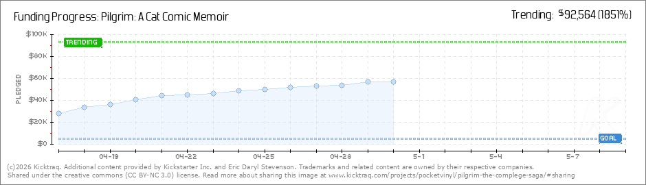 Help your backers reach your daily goals and help others see how you're doing. It's easy, with Kicktraq Mini.Here are a few quick snippits of code you can use to embed your personalized widget on your website, in your blog, and even on your favorite forum.