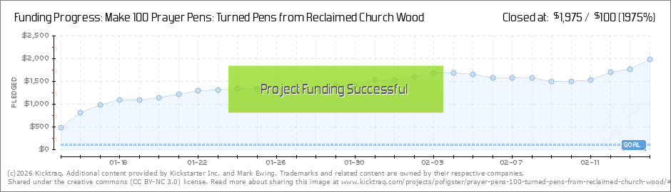 We are overjoyed that Prayer Pens has successfully funded! 🙌 Thanks to the incredible support from all 33 of you, we've raised nearly $2000 to make 43 handcrafted pens from reclaimed pew and prayer benches!!! A heartfelt thank you to each and... (Read More)