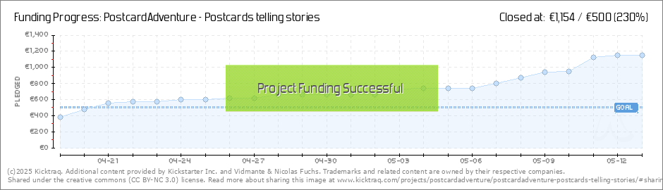 Thank you all for enormous support! We have made it, the campaign is not only fully funded but also it reached 3 out of 4 stretch goals! With your help 4 collections of 8 postcards each will reach the postboxes to spread kindness and awareness. ... (Read More)