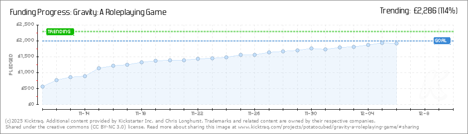 Help your backers reach your daily goals and help others see how you're doing. It's easy, with Kicktraq Mini.Here are a few quick snippits of code you can use to embed your personalized widget on your website, in your blog, and even on your favorite forum.