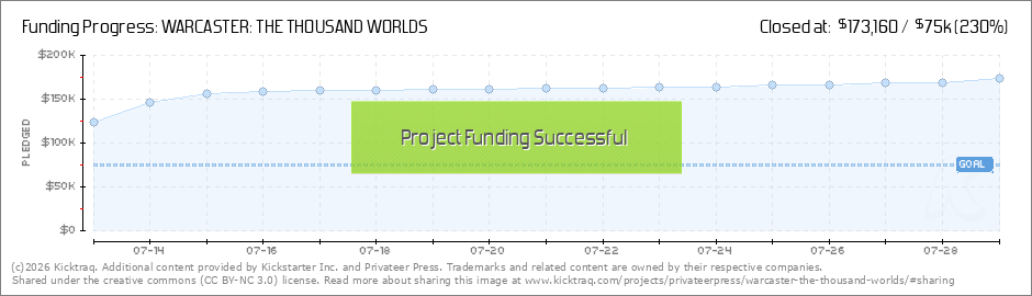 THANK YOU, WARCASTERS! Your amazing support has pushed the funding for Warcaster: The Thousand Worlds, past $150k — 200% of our original goal — opening our most recent stretch goal that will add a cloth bookmark to The Thousand Worlds source book... (Read More)