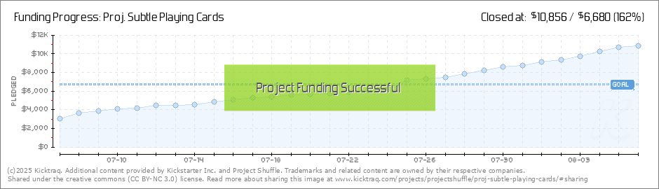 Hi everyone! Just wanted to let you all know that there is now ONLY 24 hours left to back!!! On another note, we surpassed the 130% sticker stretch goal! So every order will contain a cool Proj. Subtle sticker to go with your cool new cards :D Thank... (Read More)