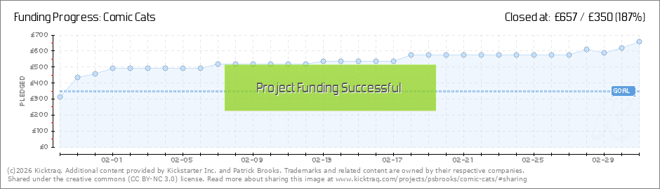 Huge thanks for all the support so far with the Comic Cats! There is now a Stretch Goal of badge set #4 unlocked at £800 which will be included with all pledges. There are also a few paintings added: 12 x 9 inch paintings of hat cats and comic cats... (Read More)