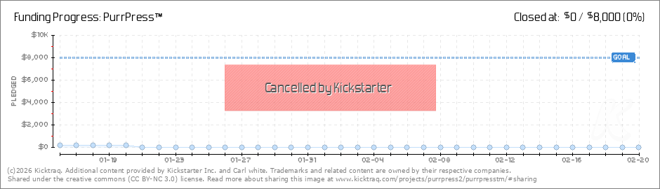 Help your backers reach your daily goals and help others see how you're doing. It's easy, with Kicktraq Mini.Here are a few quick snippits of code you can use to embed your personalized widget on your website, in your blog, and even on your favorite forum.