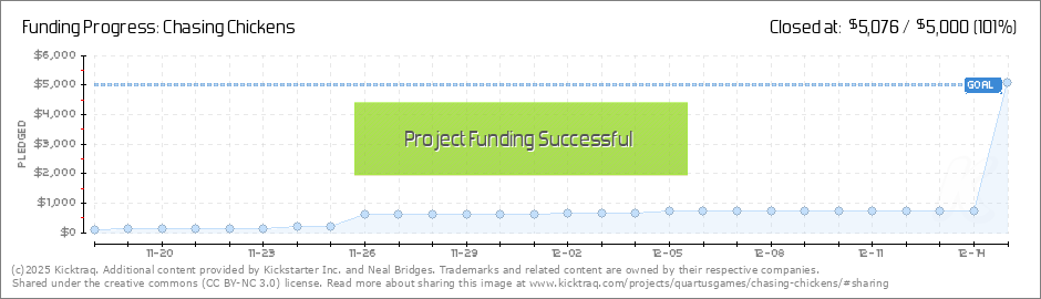 Help your backers reach your daily goals and help others see how you're doing. It's easy, with Kicktraq Mini.Here are a few quick snippits of code you can use to embed your personalized widget on your website, in your blog, and even on your favorite forum.