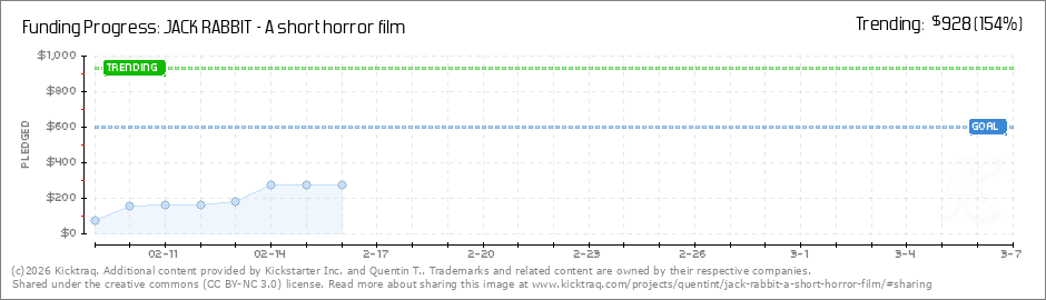 Help your backers reach your daily goals and help others see how you're doing. It's easy, with Kicktraq Mini.Here are a few quick snippits of code you can use to embed your personalized widget on your website, in your blog, and even on your favorite forum.
