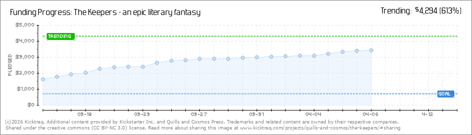 Hello wonderful backers of The Keepers. We have fantastic news: we're funded! This means that we get to make books! Gorgeous hardcovers, with and without fancy edges, paperbacks, ebooks, and all the goodies to go with! Thank you so much for your... (Read More)