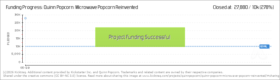 Quinn Popcorn Backers! We did it! We honestly can’t thank you guys enough!!! Thank you for taking a chance and becoming backers of Quinn Popcorn, for all of your feedback, for your encouraging thoughts, for spreading the word, for liking us on... (Read More)