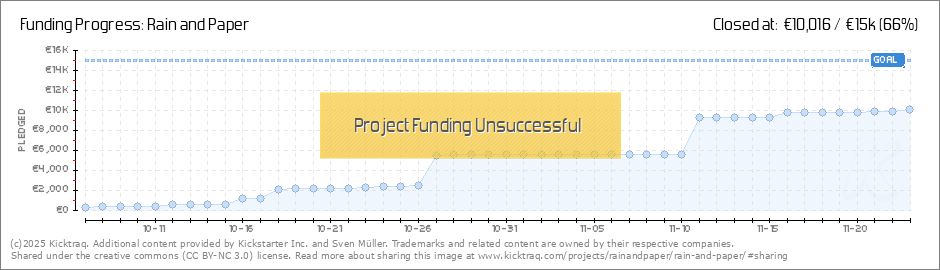 Wie läufts?Hi zusammen,die Kampagne ist jetzt seit 3 Tagen online, und es sind bereits über 300 €! Vielen Dank für euer Vertrauen und den Glauben an Rain and Paper. Aktuell sind wir beim Playtesten der Grundregeln und beim Balancing der Anzahl... (Read More)