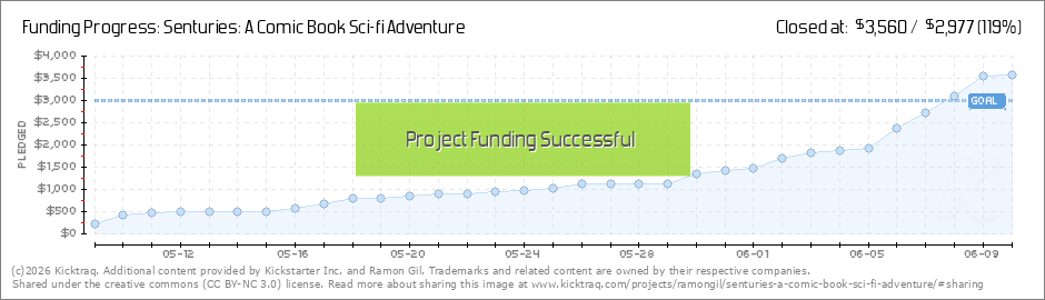 Hands off to Matt Kelly for getting us past our first $1K for the Kickstarter campaign for my latest comic book SENTURIES! New pledgers include Francisca, Benjamin Sherrill, Troy Vevasis, Chris Armstrong, Jacob Smith, Joshua Hilderbrad, Lia Chang,... (Read More)