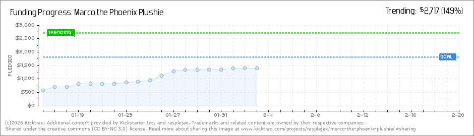 Help your backers reach your daily goals and help others see how you're doing. It's easy, with Kicktraq Mini.Here are a few quick snippits of code you can use to embed your personalized widget on your website, in your blog, and even on your favorite forum.
