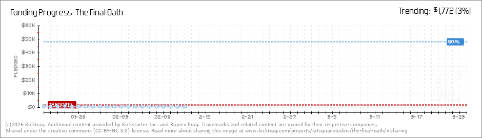 Help your backers reach your daily goals and help others see how you're doing. It's easy, with Kicktraq Mini.Here are a few quick snippits of code you can use to embed your personalized widget on your website, in your blog, and even on your favorite forum.