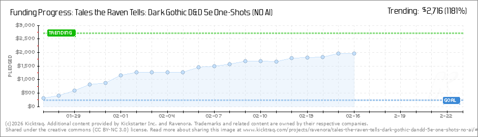 We’re incredibly close to unlocking our next Extended Goal — we’re just about CA$ 300 away from making it happen. Reaching this milestone would allow us to expand Tales the Raven Tells even further and continue elevating the dark gothic... (Read More)