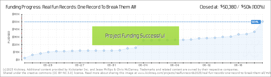 Thank you all for giving to the vision of Real Fun Records and creating one record to break them all! Here's a video update about tonight and what we're hoping for the rest of the campaign! We're asking for our friends to share a graphic and a link... (Read More)