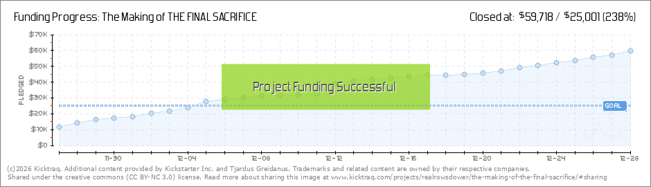 Big shout-out to all our backers for your support and enthusiasm. You got us across our second stretch goal adding an extra 15 minutes to The Making of THE FINAL SACRIFICE. It's a real homecoming for me and I can't wait to get started. Tjardus (Read More)