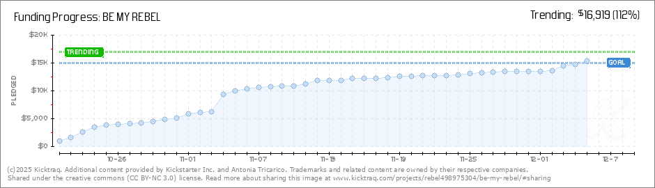 Help your backers reach your daily goals and help others see how you're doing. It's easy, with Kicktraq Mini.Here are a few quick snippits of code you can use to embed your personalized widget on your website, in your blog, and even on your favorite forum.