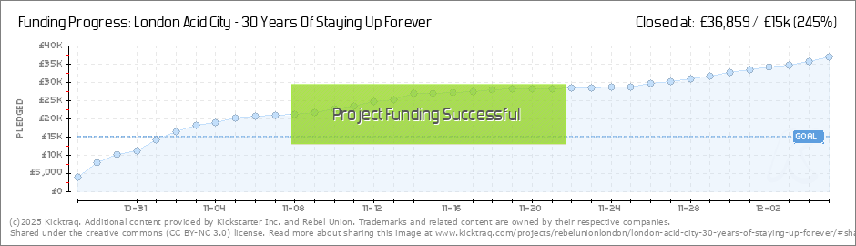 Massive thank you to everyone who has contributed so far to the ‘London Acid City - 30 Years Of Staying Up Forever’ campaign - we are 96% funded for our primary goals within the first five days!!!