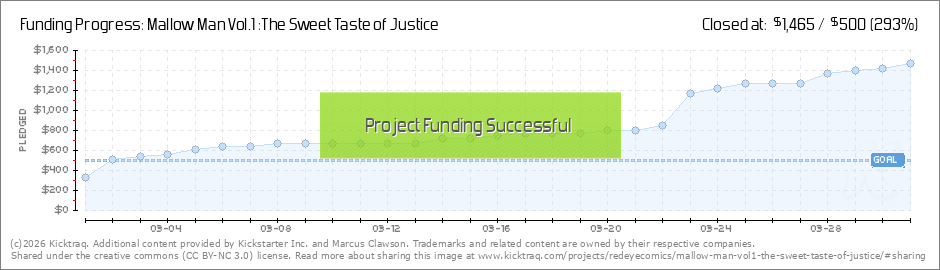 MALLOW MAN Vol. 1: The Sweet Taste of Justice is 100% FUNDED! Hey Mallow Fans! We did it! You're all gonna get your rewards! Less than 48 hours in and you all got our book printed! Don't forget to tell your friends and family so that we can hit... (Read More)