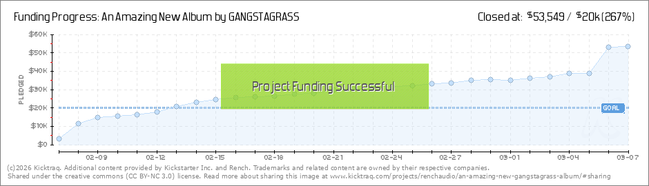 Help your backers reach your daily goals and help others see how you're doing. It's easy, with Kicktraq Mini.Here are a few quick snippits of code you can use to embed your personalized widget on your website, in your blog, and even on your favorite forum.