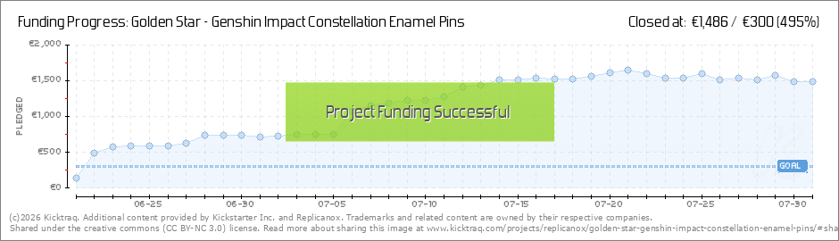 We've just reached the initial goal! The first enamel pin - Carmen Dei, Venti's Constellation, is funded! I am truly overwhelmed by your support. In less than 24 hours we've reached what feels like a milestone for a small artist like me. Thank you... (Read More)