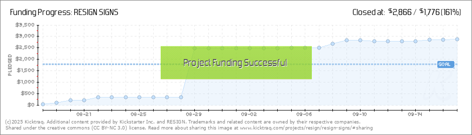 Check it out early RESIGN funders!We got our first troll mail! He says 99% of kickstarters against trump fail.What is he anyway, a mathematician?Should we prove him wrong? Thanks for your support btw. Another way to put some wind in the sails / gas... (Read More)
