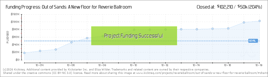 Hi everyone, Eliza here — Executive Director of the Reverie Ballroom. Our Kickstarter campaign has officially come to a close — and I just want to say thank you. The outpouring of support, enthusiasm, and generosity from this community has been... (Read More)