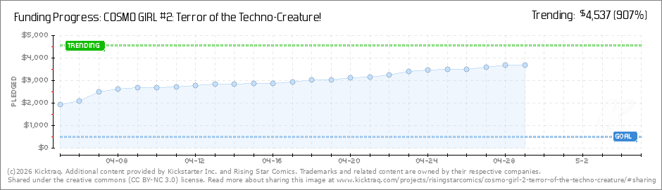 Hey everyone! Thank you so much for a great launch for Cosmo Girl #2! With over $2,600 cleared in four days, CG #2 is the fast growing campaign Rising Star Comics has had thus far! The brand is growing, and we can't do it without you! And now would... (Read More)