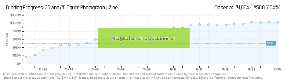One week to go, just shy of double the minimum funding goal. If you were waiting for the end to jump in, we're almost there. It looks like the print run will be about 30 copies, definitely under 50 unless this is a wild pledge week. I won't reprint... (Read More)