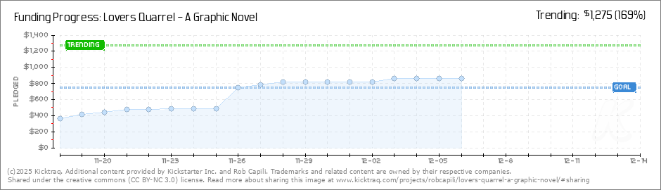 Help your backers reach your daily goals and help others see how you're doing. It's easy, with Kicktraq Mini.Here are a few quick snippits of code you can use to embed your personalized widget on your website, in your blog, and even on your favorite forum.