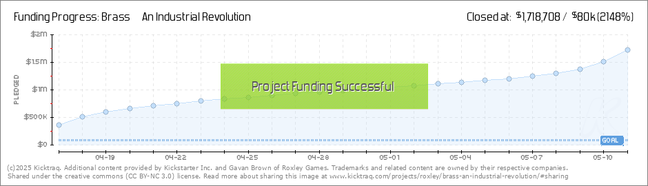 We have unlocked Clay Money Chips!Every copy of Brass backed through this campaign will come with Clay Money chips. That is a total of 140 money chips if you've backed for the two-game bundle. Yes, we are very excited about this. What are the... (Read More)