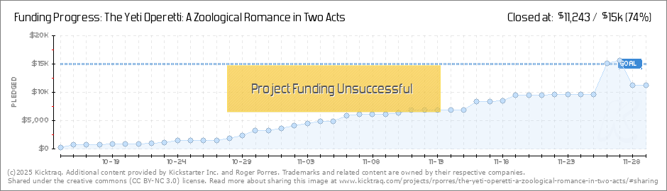 Dear friends, The campaign is now over, and we were ultimately unsuccessful. Thank you to all of you who pledged! We're going to move forward with the project regardless and just seek alternate forms of funding, perhaps an artistic grant. If you'd... (Read More)