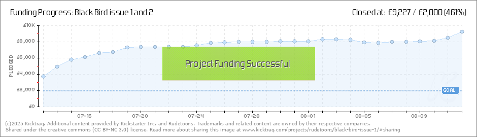 Thanks to you the first stretchgoal is UNLOCKED. SO AWESOME. And because im bats&%t crazy im thinking of adding BlackBird issue 2 to the kick. In that issue BlackBird helps a lost A.R.S.E. Commando in a falling apart city as they try to survive... (Read More)