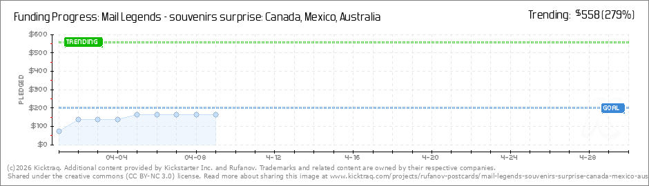 Help your backers reach your daily goals and help others see how you're doing. It's easy, with Kicktraq Mini.Here are a few quick snippits of code you can use to embed your personalized widget on your website, in your blog, and even on your favorite forum.