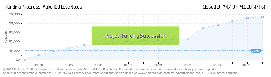 Help your backers reach your daily goals and help others see how you're doing. It's easy, with Kicktraq Mini.Here are a few quick snippits of code you can use to embed your personalized widget on your website, in your blog, and even on your favorite forum.