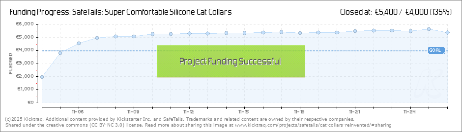 In less than 48 Hours we sold over 200 collars and 78 AirTag attachments 😻! We could not have reached this goal without your support and we are truly grateful to each and one of you for trusting us to make the most comfortable and safe cat collar... (Read More)