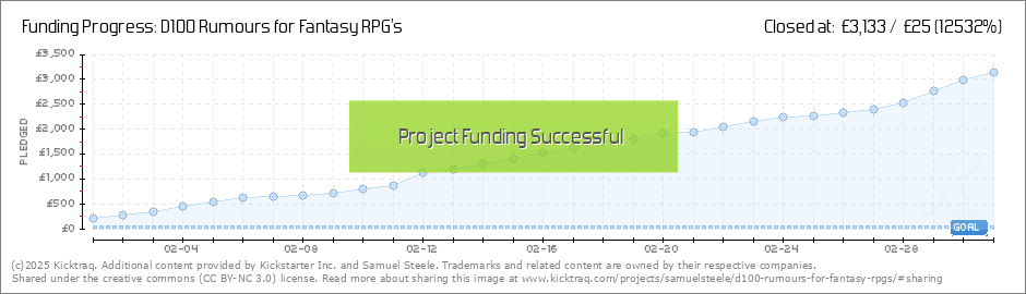We've surpassed 100 backers which is a massive milestone, thank you everyone for pledging your support and helping to bring D100 Rumours to life! To mark this milestone I wanted to share a few rumours from the Zine. Not every rumour in D100 Rumours... (Read More)