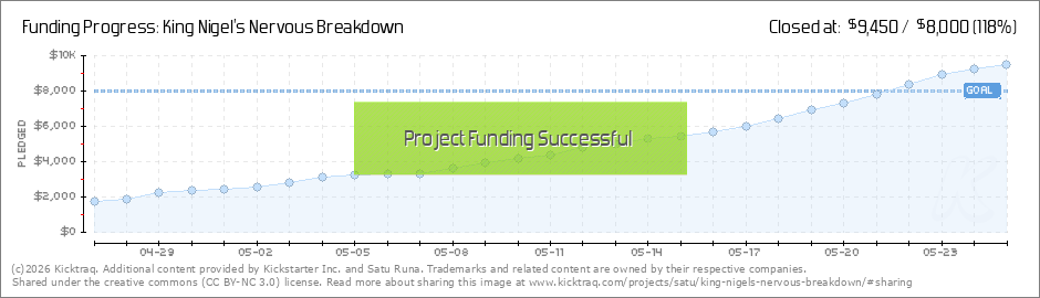 I can't believe we raised 23% of our overall goal on our first day of fundraising! Special thanks to our spectacular early backers. You've all given me the confidence I need to carry out this herculean task to the end. If you believe in King Nigel's... (Read More)