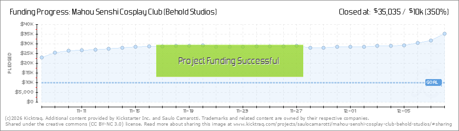 Help your backers reach your daily goals and help others see how you're doing. It's easy, with Kicktraq Mini.Here are a few quick snippits of code you can use to embed your personalized widget on your website, in your blog, and even on your favorite forum.