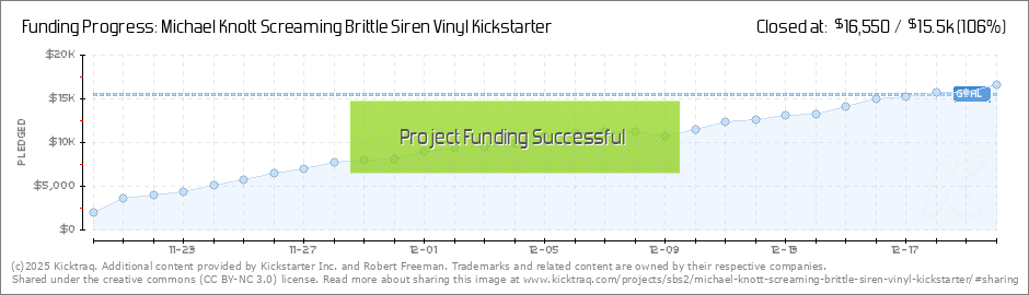 Congratulations!!! ๐พ๐๐ย We made it to our fund raising goal and there is only 24hrs left till the campaign ends. You still have one last chance left to get your copy of Screaming Brittle Siren on Vinyl and CD. There is also still one... (Read More)