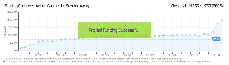 All five stretch goals have been unlocked and once again, we are SO thankful to everyone who has backed this project! This means that there are now 20 candles to choose from! To anyone who pledged for 10 candles: If you still want more candles, you... (Read More)