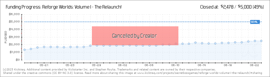 We've crept closer to the end date of this campaign and, although everyone involved has been incredibly supportive, it seems we likely won't make it to the goal. After a lot of thought I've decided to cancel the campaign for Reforge Worlds: Volume I.... (Read More)