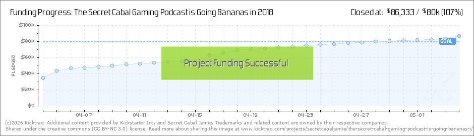 WE DID IT! Hey Now Cabalists, we did it. We finally surpassed our funding goal. So barring any unforeseen anomalies like an asteroid hitting us or Fireball Island Part 2 campaign launching, we'll be good to go for an other year of content! Thank... (Read More)