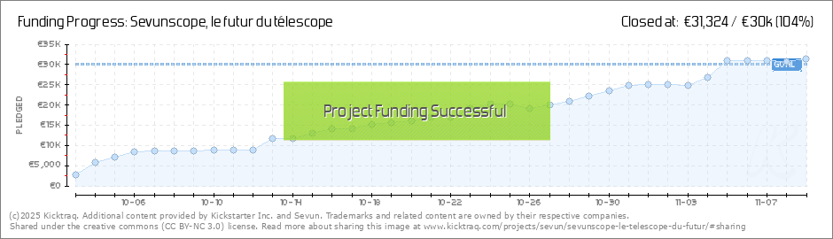 L'aventure du Sevunscope est sur le point d'atteindre son objectif de financement grâce à votre précieuse contribution ! Il ne reste plus que 14 jours et seulement 37 % à réunir. Le Sevunscope, le premier télescope évolutif, est conçu pour... (Read More)
