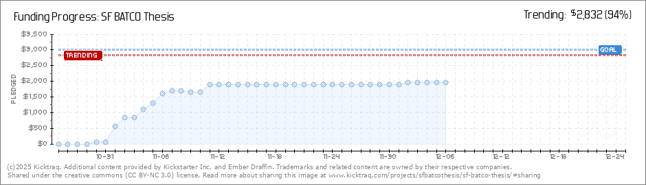 Help your backers reach your daily goals and help others see how you're doing. It's easy, with Kicktraq Mini.Here are a few quick snippits of code you can use to embed your personalized widget on your website, in your blog, and even on your favorite forum.