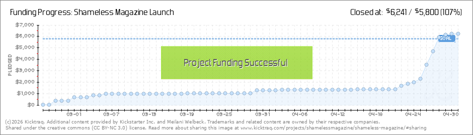 Help your backers reach your daily goals and help others see how you're doing. It's easy, with Kicktraq Mini.Here are a few quick snippits of code you can use to embed your personalized widget on your website, in your blog, and even on your favorite forum.