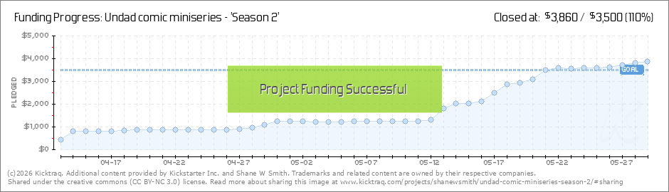 Today was an awesome day. This campaign obtained the final $165 it needed to pass its funding goal (and then some), which means that Undad Volume Two is officially in production! Thank you, thank you, thank you! If you have pledged to Undad, thank... (Read More)