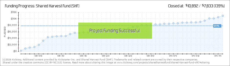 Thank you to all of our supporters who believed in our mission and helped us reach this exciting milestone of our campaign. Shared Harvest Fund has officially met our goal on Kickstarter and we are 100% funded!!!! We are beyond excited to see how... (Read More)